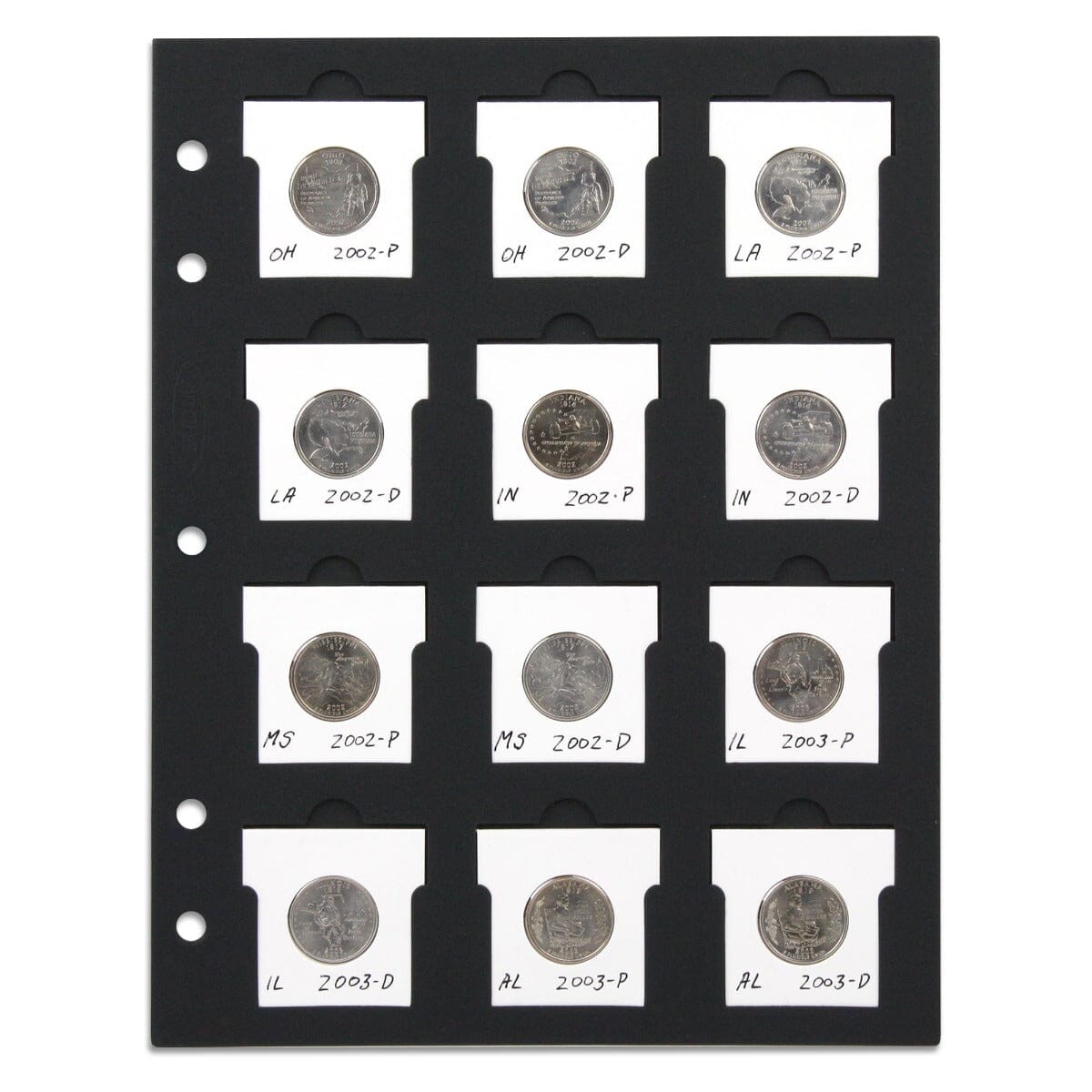 The BCW 2" x 2" Slotted Paper Page is a paper page that is slotted for storing coins in paper flips or slides. This product is made of multi-ply paper board with twelve top-loading recessed channels. Slotted Paper Pages fit all standard 3-ring binders and albums.
