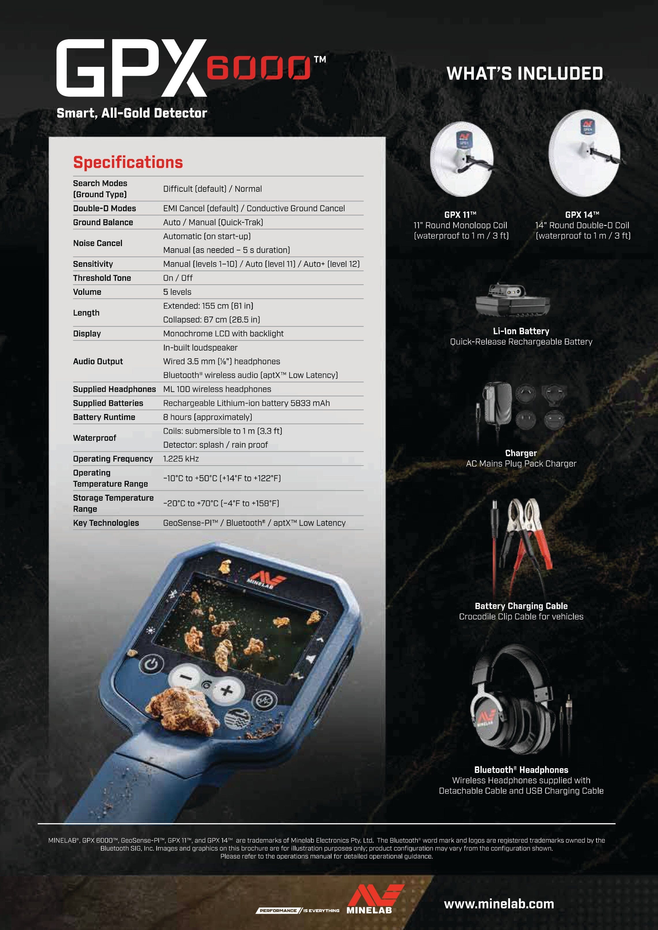 Tested in the harsh environments of the Australian outback, Africa and the Middle East, the GPX 6000 can withstand extreme heat and heavy rains. A 3-year warranty is included, backed by Minelab's global support.