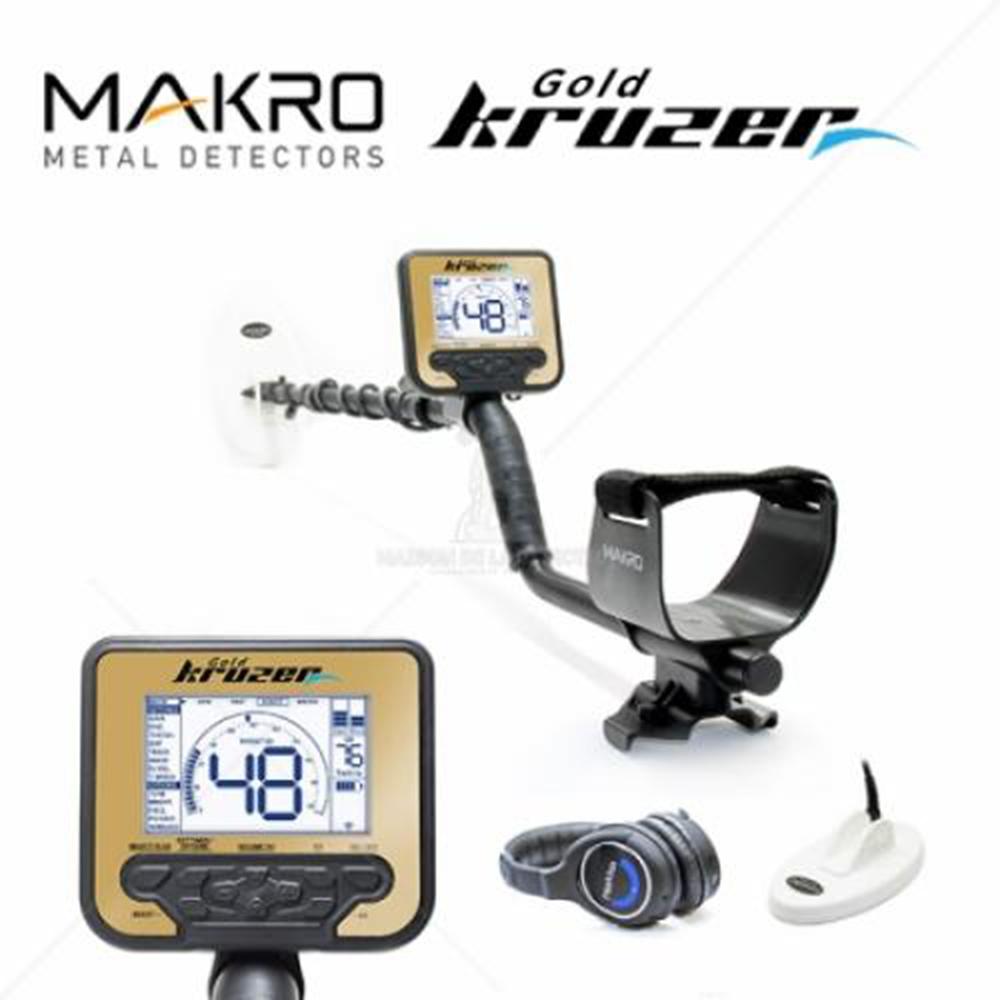 Makro Gold Kruzer Waterproof Metal Detector is waterproof to 5 meters. This High Frequency version operates at 61kHz for gold nugget prospecting. Ships complete with GK26C 10" x 5.5" Search Coil and a GK19 7.5" x 4" Search Coil and wireless headphones. 2 Year Warranty. Built in Recharge System.
