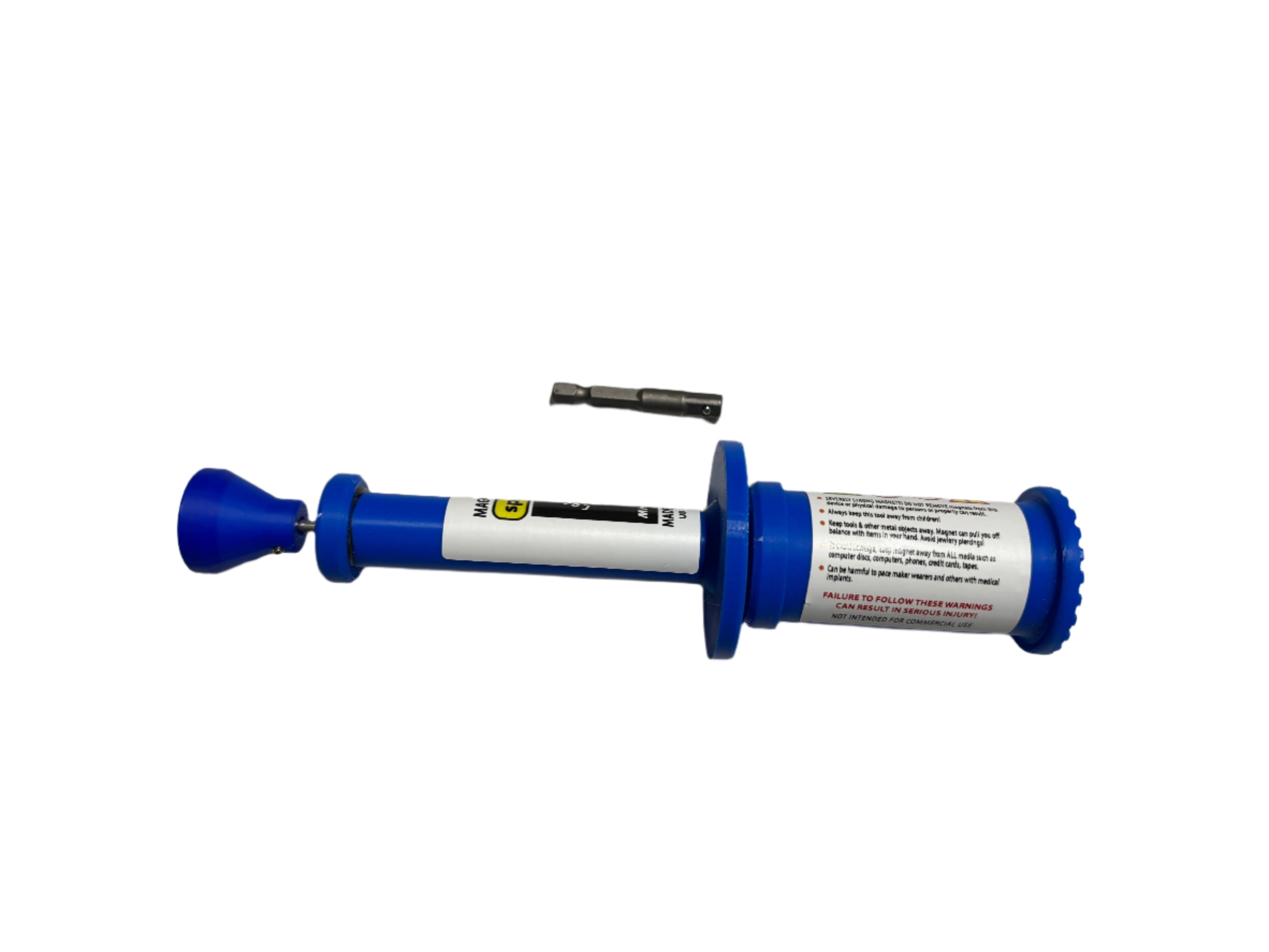 Introducing the little brother of the Spin It Off black sand separator tool. The Mini Spinny is the newest cool tool at an affordable price in Gold Mining. It is used to separate the magnetite from your concentrates. Simply hook this up to any drill motor and spin it through the concentrates to collect all of the magnetic black sands. Then, pull the plunger in another container with water to slough off the black sands.